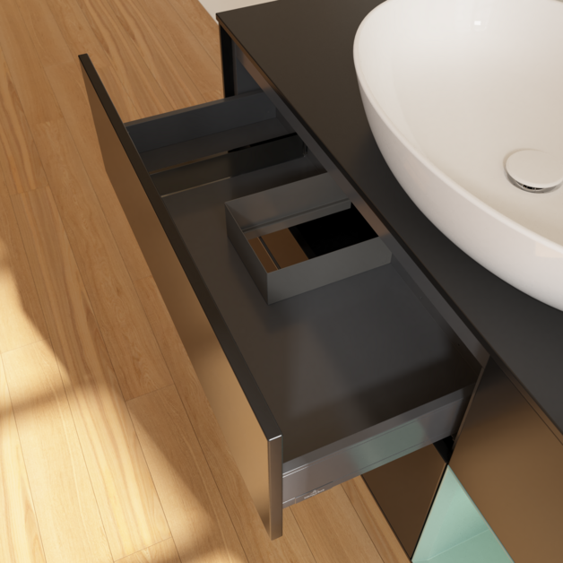 Продуманное внутреннее разделение мебели для ванной Villeroy & Boch позволяет создать индивидуальную систему организации пространства в ванной комнате. Элементы, расположение которых можно менять, например регулируемые стеклянные перегородки и контейнеры для аксессуаров различных размеров, обеспечивают хороший обзор и порядок. Благодаря практичной системе внутреннего разделения вы будете быстро находить принадлежности для ванной, которыми вы постоянно пользуетесь.
