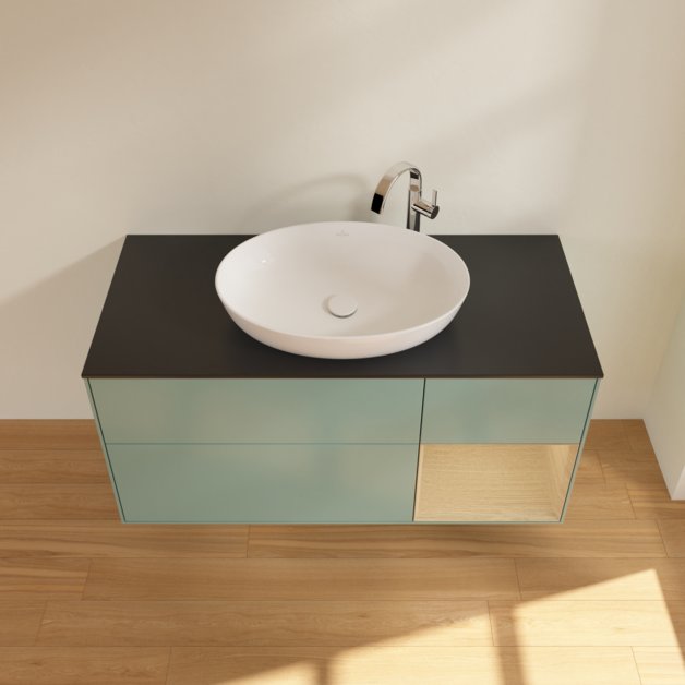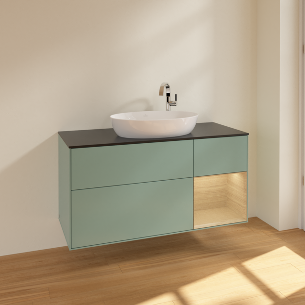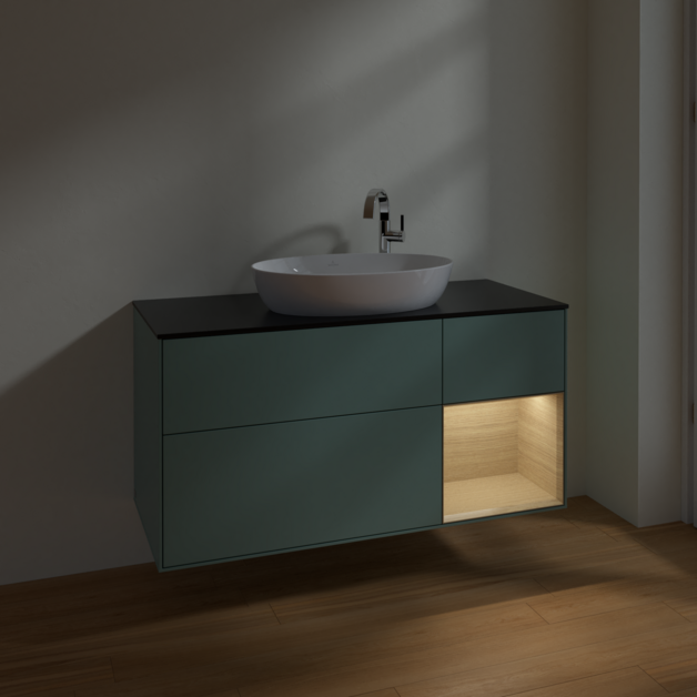 Тумба под раковину Villeroy & Boch Finion 120х50,1 см с подсветкой МДФ оливковый матовый лак/стекло черное матовое F952PCGM