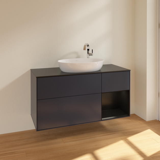 Тумба под раковину Villeroy & Boch Finion 120х50,1 см с подсветкой МДФ темно-синий матовый лак/стекло черное матовое