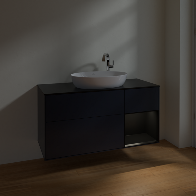 Тумба под раковину Villeroy & Boch Finion 120х50,1 см с подсветкой МДФ темно-синий матовый лак/стекло черное матовое F952PDHG