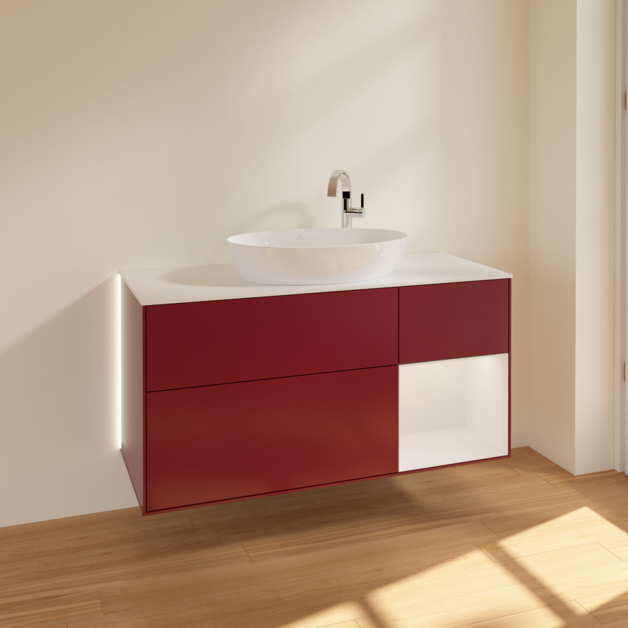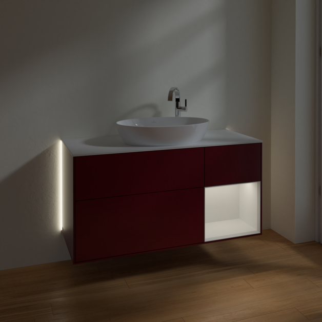Тумба под раковину Villeroy & Boch Finion 120х50,1 см с подсветкой МДФ пион матовый лак/стекло белое матовое G951GFHB