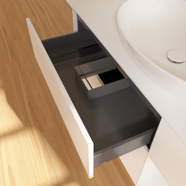 Продуманное внутреннее разделение мебели для ванной Villeroy & Boch позволяет создать индивидуальную систему организации пространства в ванной комнате. Элементы, расположение которых можно менять, например регулируемые стеклянные перегородки и контейнеры для аксессуаров различных размеров, обеспечивают хороший обзор и порядок. Благодаря практичной системе внутреннего разделения вы будете быстро находить принадлежности для ванной, которыми вы постоянно пользуетесь.
