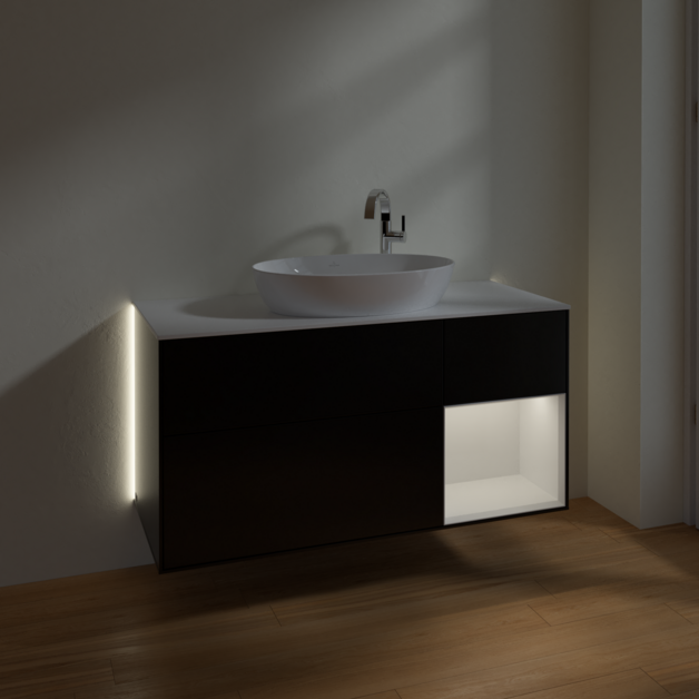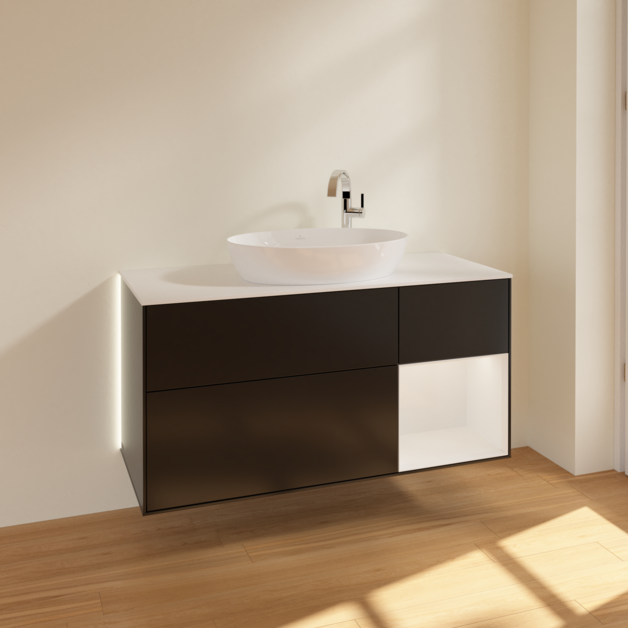 Тумба под раковину Villeroy & Boch Finion 120х50,1 см с подсветкой МДФ черный матовый лак/стекло белое матовое G951GFPD