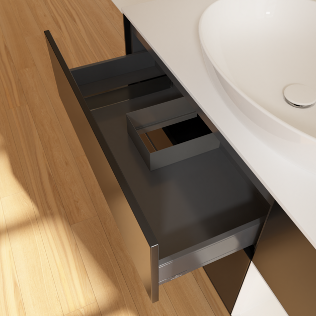 Продуманное внутреннее разделение мебели для ванной Villeroy & Boch позволяет создать индивидуальную систему организации пространства в ванной комнате. Элементы, расположение которых можно менять, например регулируемые стеклянные перегородки и контейнеры для аксессуаров различных размеров, обеспечивают хороший обзор и порядок. Благодаря практичной системе внутреннего разделения вы будете быстро находить принадлежности для ванной, которыми вы постоянно пользуетесь.