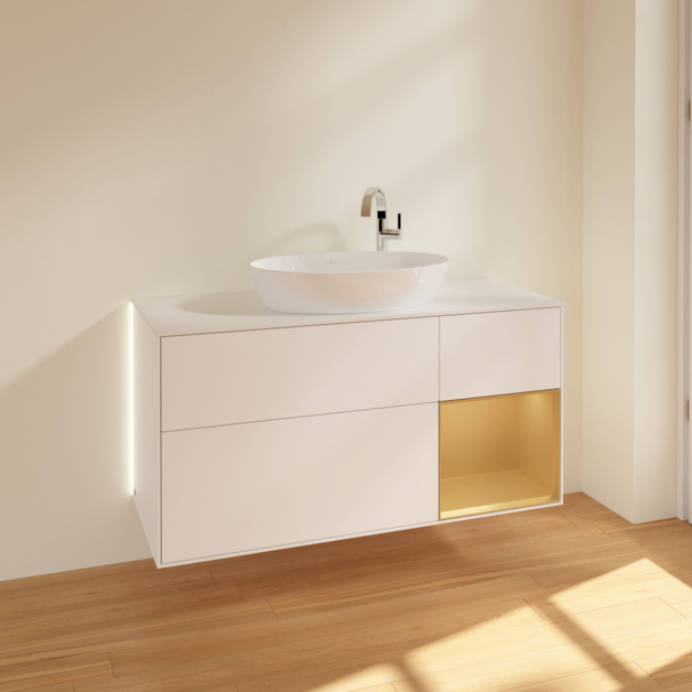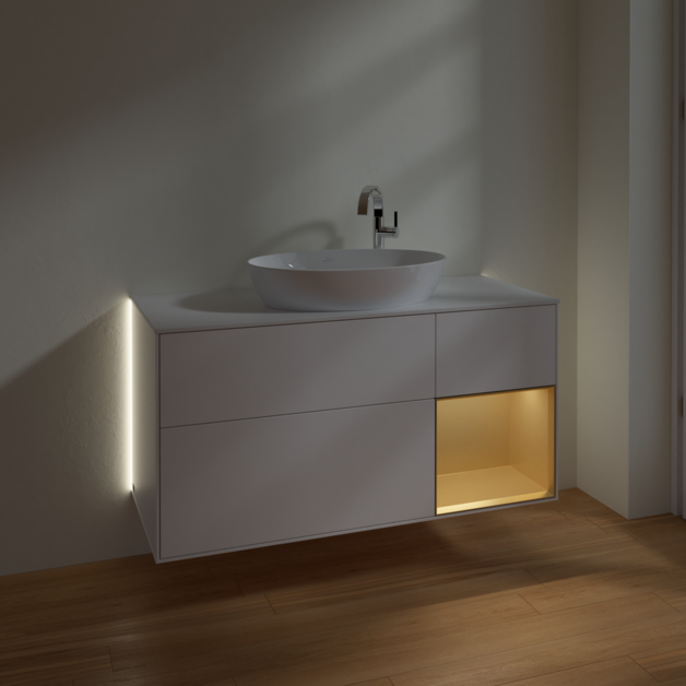Выразительный дизайн и изысканная техника — коллекция мебели для ванных комнат Villeroy & Boch Finion идеальна во всем. Единая система подсветки мебели создает определенную атмосферу в вашей ванной, а модульные полки и шкафы различных цветов обеспечивают ее индивидуальность. Мебель для ванной из коллекции Villeroy & Boch Finion со стенками толщиной всего 8 мм подчеркивает лаконичность дизайна.