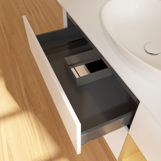 Продуманное внутреннее разделение мебели для ванной Villeroy & Boch позволяет создать индивидуальную систему организации пространства в ванной комнате. Элементы, расположение которых можно менять, например регулируемые стеклянные перегородки и контейнеры для аксессуаров различных размеров, обеспечивают хороший обзор и порядок. Благодаря практичной системе внутреннего разделения вы будете быстро находить принадлежности для ванной, которыми вы постоянно пользуетесь.