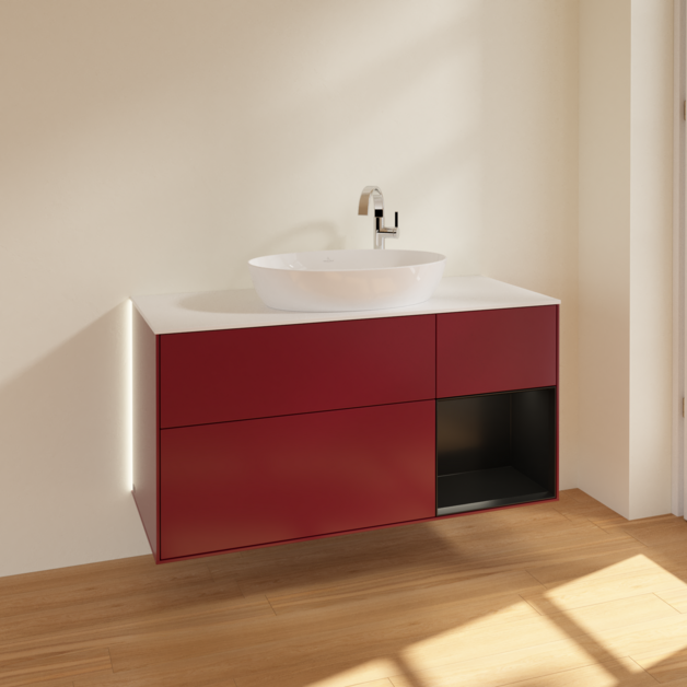 Тумба под раковину Villeroy & Boch Finion 120х50,1 см с подсветкой МДФ пион матовый лак/стекло белое матовое G951PDHB