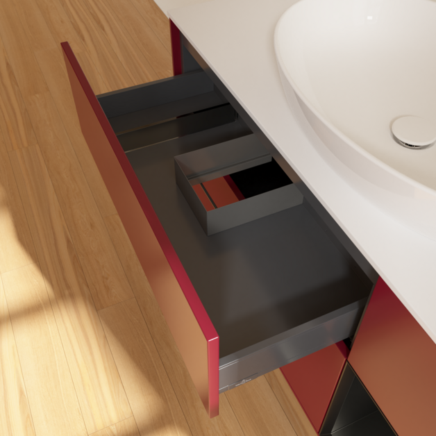 Продуманное внутреннее разделение мебели для ванной Villeroy & Boch позволяет создать индивидуальную систему организации пространства в ванной комнате. Элементы, расположение которых можно менять, например регулируемые стеклянные перегородки и контейнеры для аксессуаров различных размеров, обеспечивают хороший обзор и порядок. Благодаря практичной системе внутреннего разделения вы будете быстро находить принадлежности для ванной, которыми вы постоянно пользуетесь.