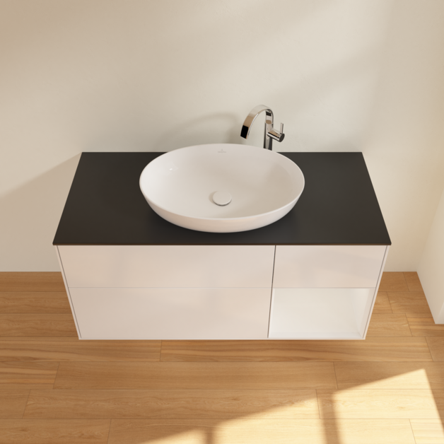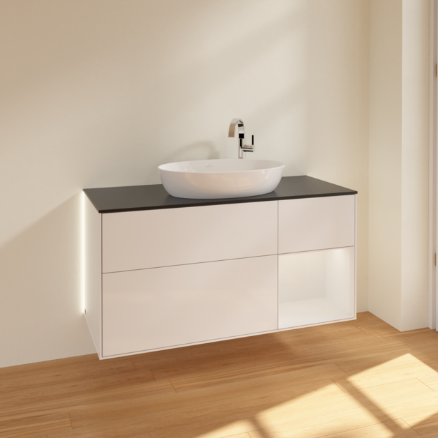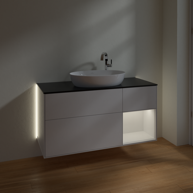 Тумба под раковину Villeroy & Boch Finion 120х50,1 см с подсветкой МДФ глянцевый белый лак/стекло черное матовое G952GFGF