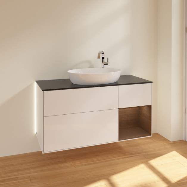 Тумба под раковину Villeroy & Boch Finion 120х50,1 см с подсветкой МДФ глянцевый белый лак/стекло черное матовое