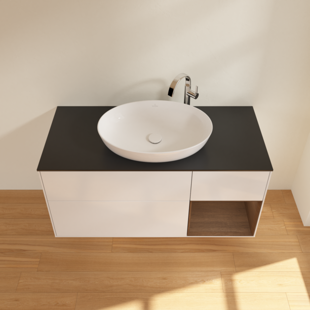Выразительный дизайн и изысканная техника — коллекция мебели для ванных комнат Villeroy & Boch Finion идеальна во всем. Единая система подсветки мебели создает определенную атмосферу в вашей ванной, а модульные полки и шкафы различных цветов обеспечивают ее индивидуальность. Мебель для ванной из коллекции Villeroy & Boch Finion со стенками толщиной всего 8 мм подчеркивает лаконичность дизайна.