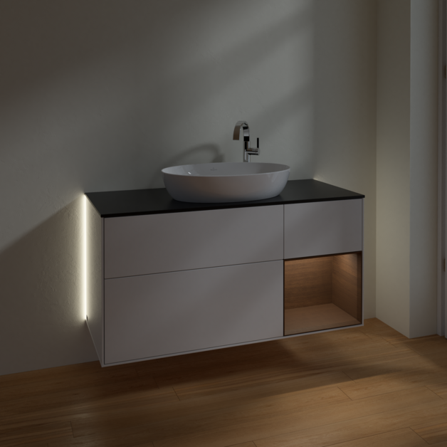 Тумба под раковину Villeroy & Boch Finion 120х50,1 см с подсветкой МДФ глянцевый белый лак/стекло черное матовое G952GNGF
