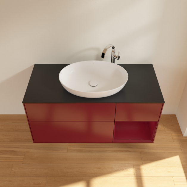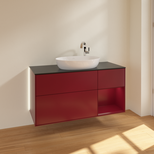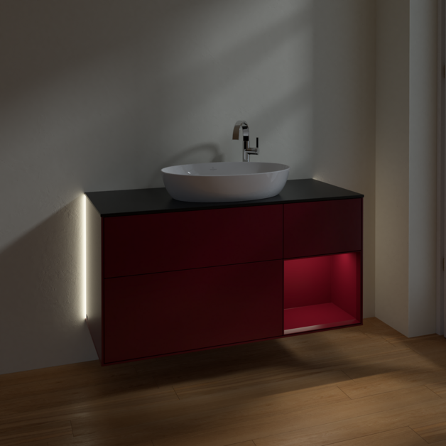 Тумба под раковину Villeroy & Boch Finion 120х50,1 см с подсветкой МДФ пион матовый лак/стекло черное матовое G952HBHB