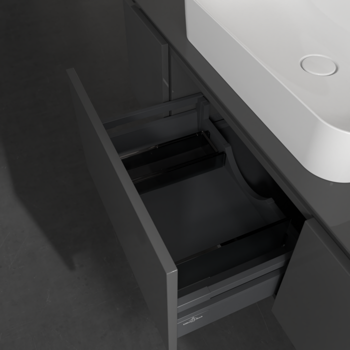Практичные внутренние перегородки. Продуманные внутренние перегородки в мебели для ванной комнаты Villeroy & Boch позволяют индивидуально поддерживать порядок в ванной комнате. Различные элементы, такие как регулируемые стеклянные перегородки и ящики для аксессуаров различных размеров, обеспечивают порядок и хороший обзор.