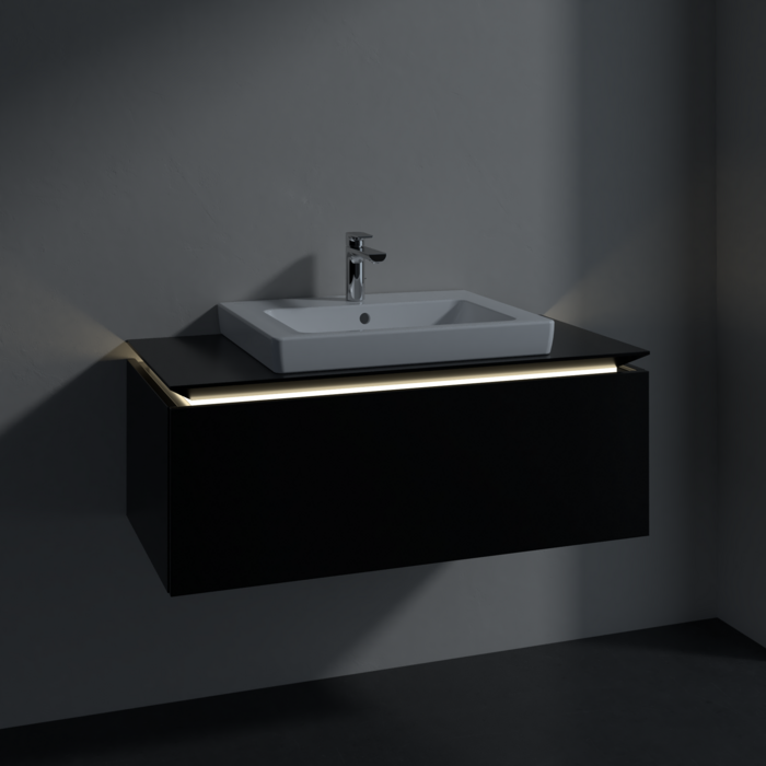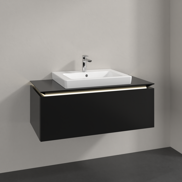Тумба под раковину Villeroy & Boch Legato 100х38 см с подсветкой МДФ/ДСП черный матовый лак B680L0PD