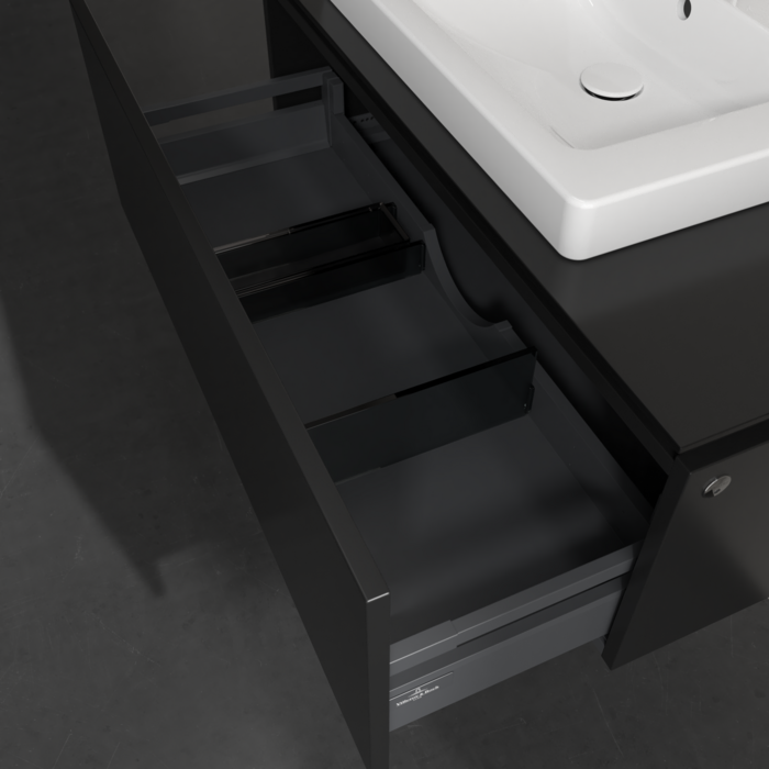 Практичные внутренние перегородки. Продуманные внутренние перегородки в мебели для ванной комнаты Villeroy & Boch позволяют индивидуально поддерживать порядок в ванной комнате. Различные элементы, такие как регулируемые стеклянные перегородки и ящики для аксессуаров различных размеров, обеспечивают порядок и хороший обзор.