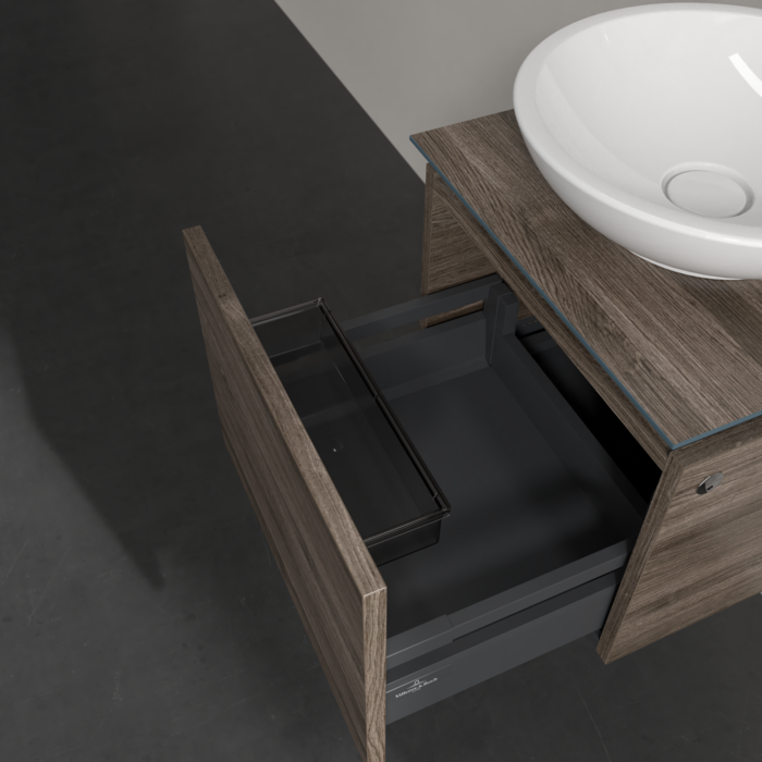 Практичные внутренние перегородки. Продуманные внутренние перегородки в мебели для ванной комнаты Villeroy & Boch позволяют индивидуально поддерживать порядок в ванной комнате. Различные элементы, такие как регулируемые стеклянные перегородки и ящики для аксессуаров различных размеров, обеспечивают порядок и хороший обзор.