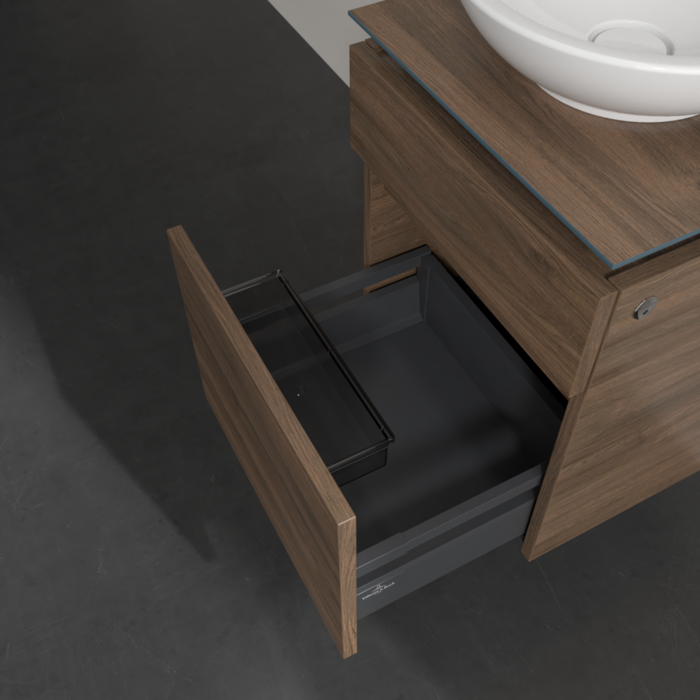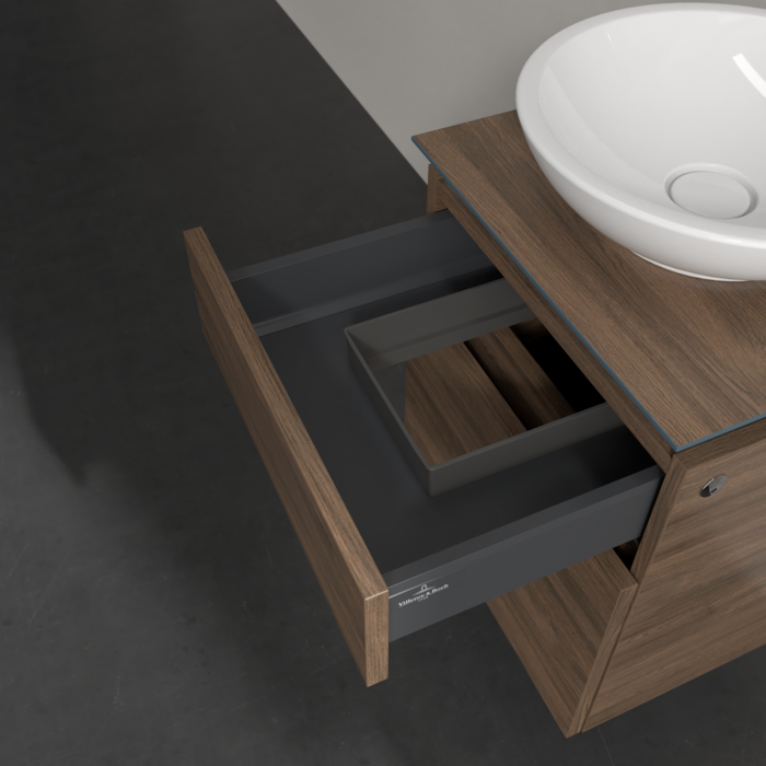Практичные внутренние перегородки. Продуманные внутренние перегородки в мебели для ванной комнаты Villeroy & Boch позволяют индивидуально поддерживать порядок в ванной комнате. Различные элементы, такие как регулируемые стеклянные перегородки и ящики для аксессуаров различных размеров, обеспечивают порядок и хороший обзор.