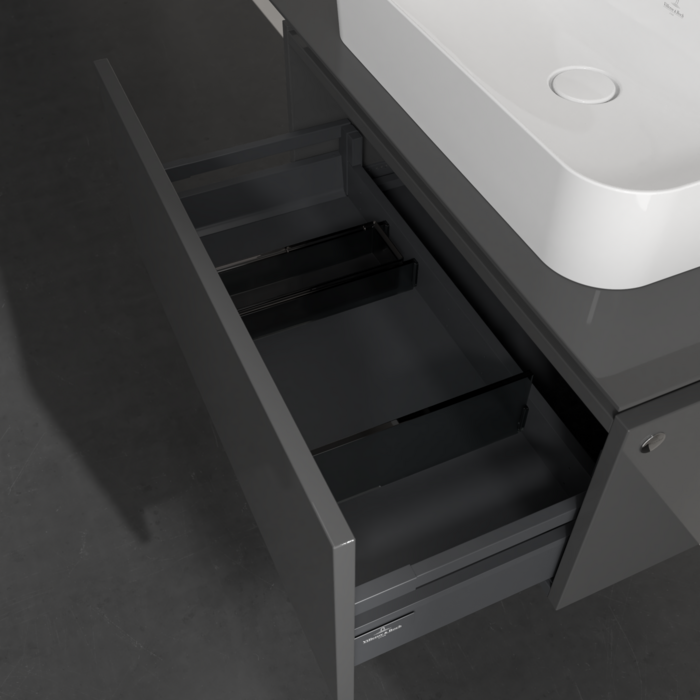 Практичные внутренние перегородки. Продуманные внутренние перегородки в мебели для ванной комнаты Villeroy & Boch позволяют индивидуально поддерживать порядок в ванной комнате. Различные элементы, такие как регулируемые стеклянные перегородки и ящики для аксессуаров различных размеров, обеспечивают порядок и хороший обзор.