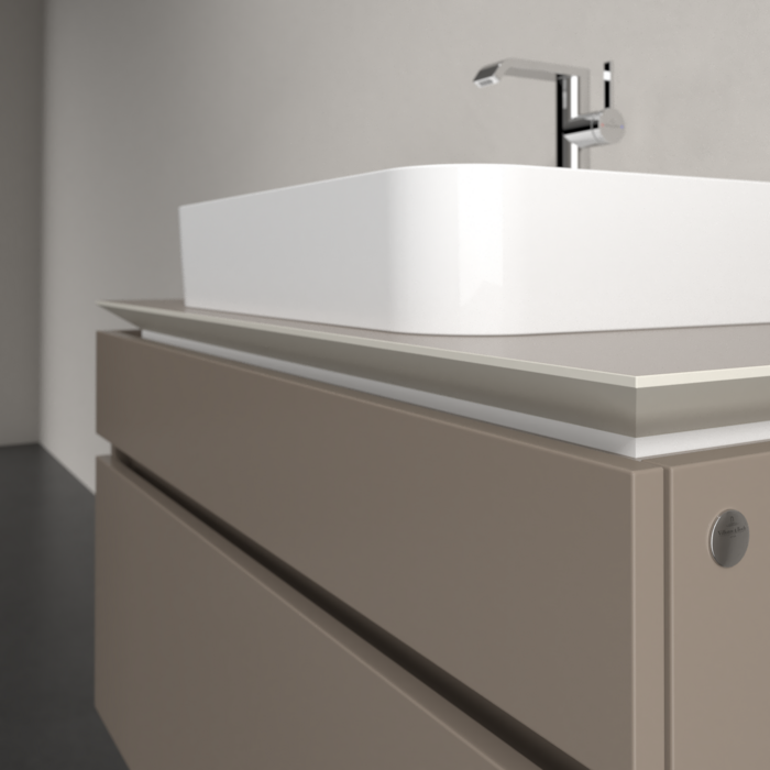 Legato — это комплексная коллекция для ванных комнат в лаконичном и элегантном стиле, которая отвечает самым взыскательным требованиям. Прямые линии изделий из керамики идеально дополняют выразительный дизайн мебели этой успешной коллекции. Благодаря изысканным деталям, таким как опциональное встроенное светодиодное освещение с регулируемой яркостью и скошенные края, тумбы под раковину для накладного монтажа кажутся парящими.