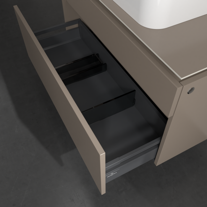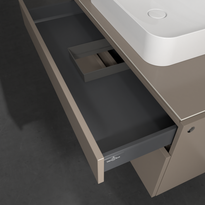 Практичные внутренние перегородки. Продуманные внутренние перегородки в мебели для ванной комнаты Villeroy & Boch позволяют индивидуально поддерживать порядок в ванной комнате. Различные элементы, такие как регулируемые стеклянные перегородки и ящики для аксессуаров различных размеров, обеспечивают порядок и хороший обзор.