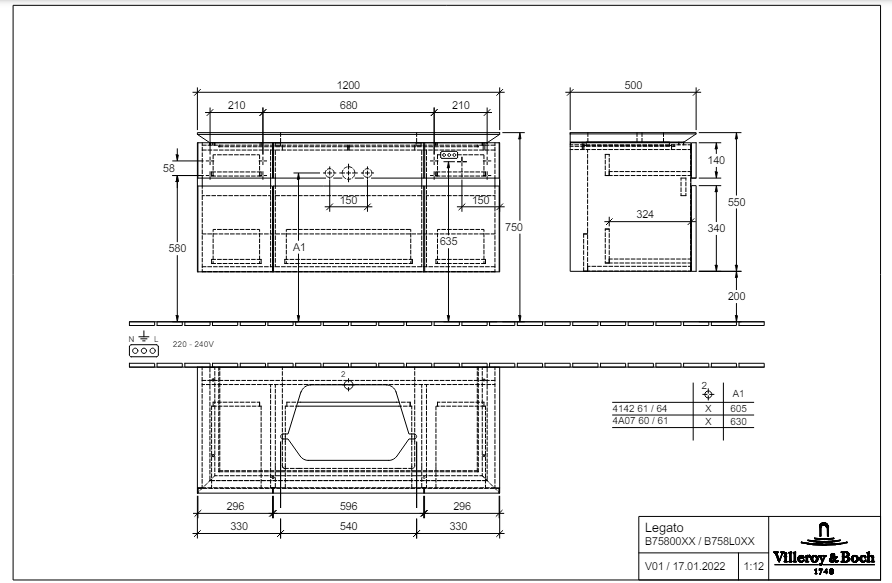 Тумба под раковину Villeroy & Boch Legato 120х55 см МДФ/ДСП черный матовый лак B75800PD