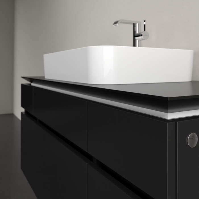 Legato — это комплексная коллекция для ванных комнат в лаконичном и элегантном стиле, которая отвечает самым взыскательным требованиям. Прямые линии изделий из керамики идеально дополняют выразительный дизайн мебели этой успешной коллекции. Благодаря изысканным деталям, таким как опциональное встроенное светодиодное освещение с регулируемой яркостью и скошенные края, тумбы под раковину для накладного монтажа кажутся парящими.