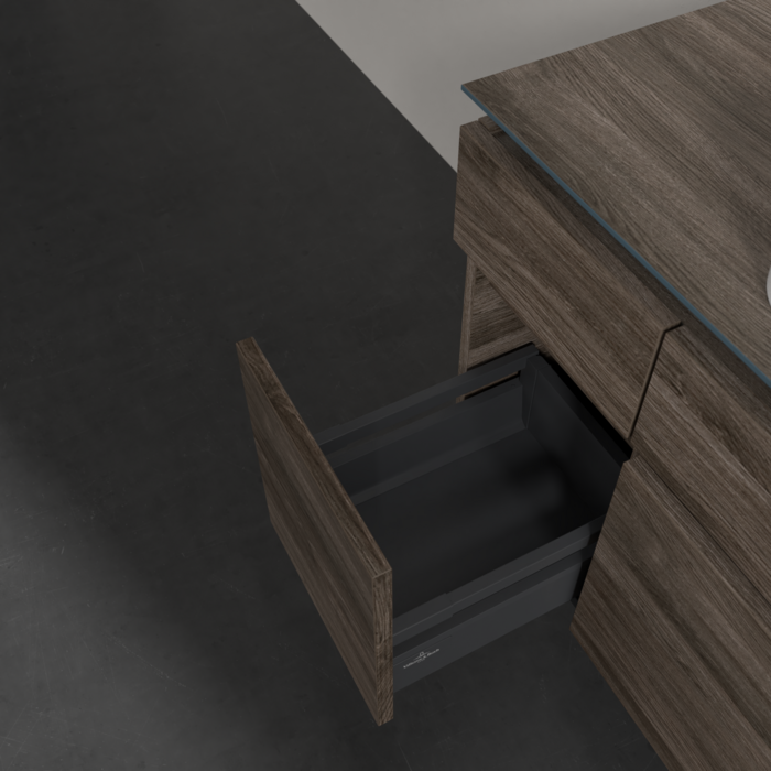 Практичные внутренние перегородки. Продуманные внутренние перегородки в мебели для ванной комнаты Villeroy & Boch позволяют индивидуально поддерживать порядок в ванной комнате. Различные элементы, такие как регулируемые стеклянные перегородки и ящики для аксессуаров различных размеров, обеспечивают порядок и хороший обзор.