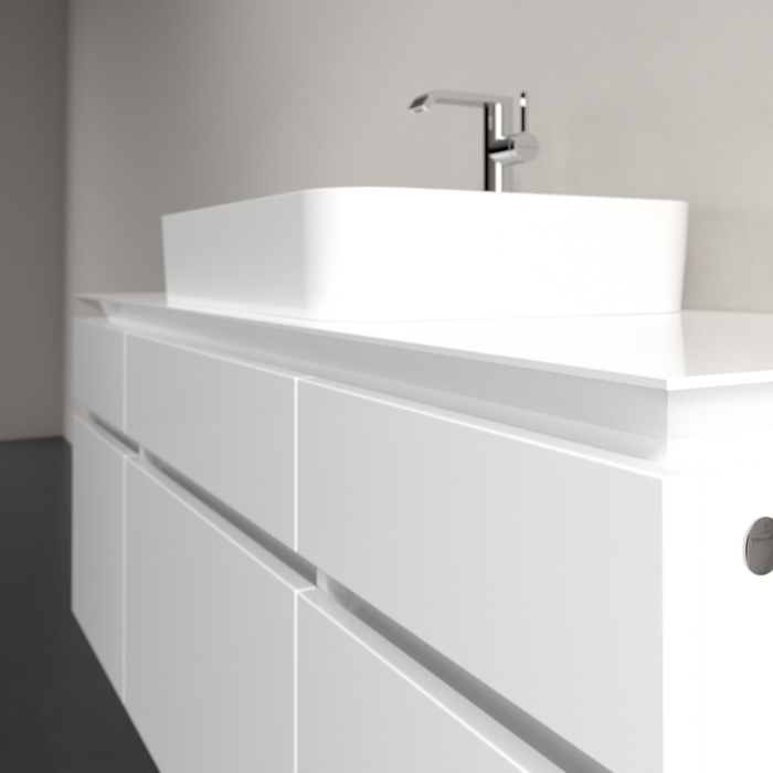 Legato — это комплексная коллекция для ванных комнат в лаконичном и элегантном стиле, которая отвечает самым взыскательным требованиям. Прямые линии изделий из керамики идеально дополняют выразительный дизайн мебели этой успешной коллекции. Благодаря изысканным деталям, таким как опциональное встроенное светодиодное освещение с регулируемой яркостью и скошенные края, тумбы под раковину для накладного монтажа кажутся парящими.