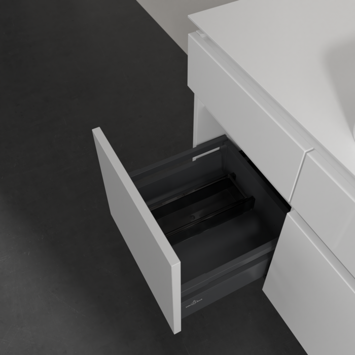 Практичные внутренние перегородки. Продуманные внутренние перегородки в мебели для ванной комнаты Villeroy & Boch позволяют индивидуально поддерживать порядок в ванной комнате. Различные элементы, такие как регулируемые стеклянные перегородки и ящики для аксессуаров различных размеров, обеспечивают порядок и хороший обзор.
