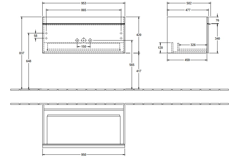 Тумба под раковину Villeroy & Boch Venticello 95,3х50,2 см ДСП/МДФ белое дерево/ручка алюминий белый A93502E8