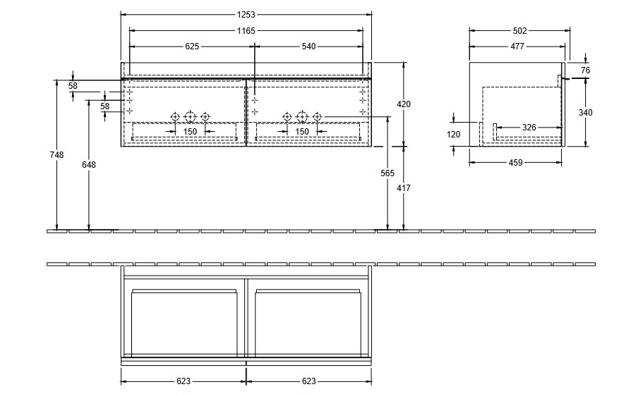 Тумба под раковину Villeroy & Boch Venticello 125,3х50,2 см ДСП каменный дуб/ручка медь A93905RK