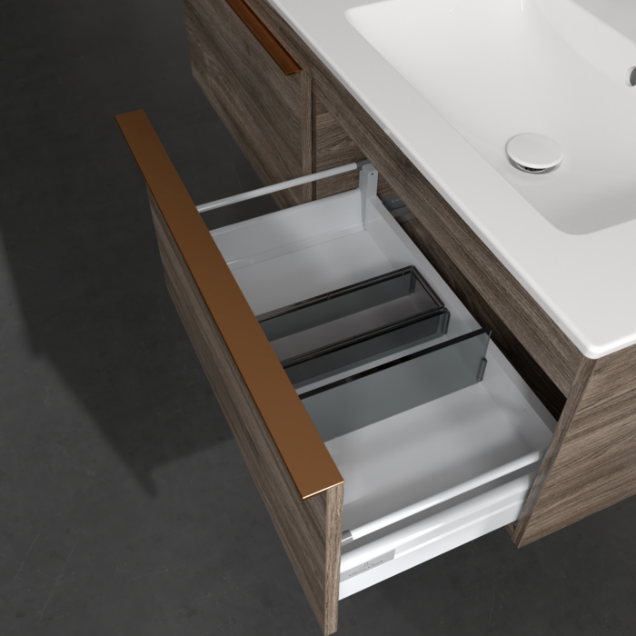 Продуманное внутреннее разделение мебели для ванной Villeroy & Boch позволяет создать индивидуальную систему организации пространства в ванной комнате. Элементы, расположение которых можно менять, например регулируемые стеклянные перегородки и контейнеры для аксессуаров различных размеров, обеспечивают хороший обзор и порядок. Благодаря практичной системе внутреннего разделения вы будете быстро находить принадлежности для ванной, которыми вы постоянно пользуетесь.
