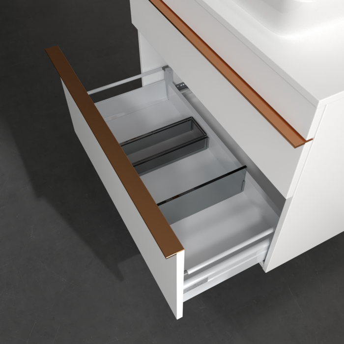 Продуманное внутреннее разделение мебели для ванной Villeroy & Boch позволяет создать индивидуальную систему организации пространства в ванной комнате. Элементы, расположение которых можно менять, например регулируемые стеклянные перегородки и контейнеры для аксессуаров различных размеров, обеспечивают хороший обзор и порядок. Благодаря практичной системе внутреннего разделения вы будете быстро находить принадлежности для ванной, которыми вы постоянно пользуетесь.