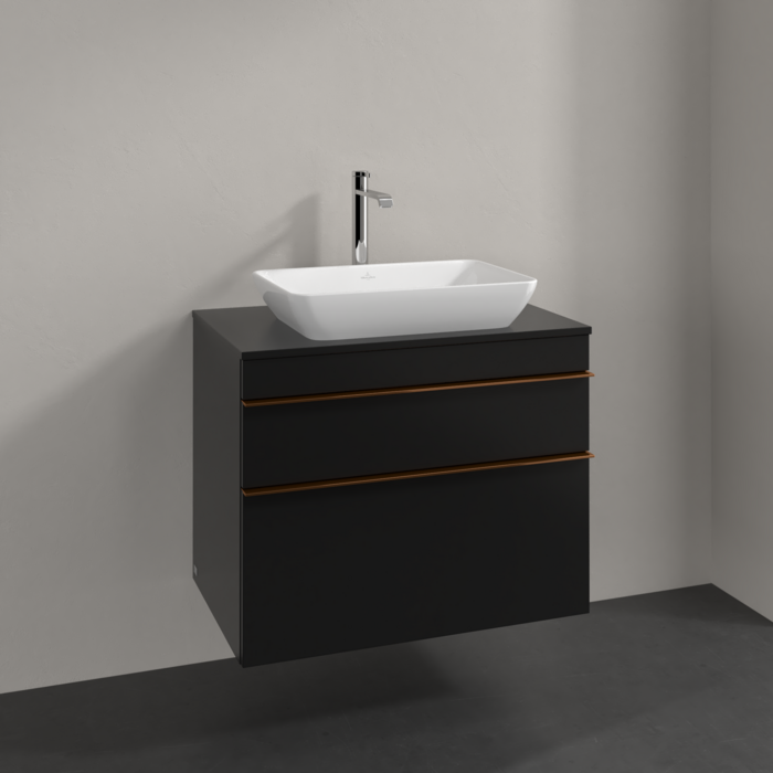Тумба под раковину Villeroy & Boch Venticello 75,7х50,2 см МДФ черный матовый лак/ручка медь A94005PD