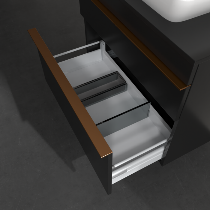 Продуманное внутреннее разделение мебели для ванной Villeroy & Boch позволяет создать индивидуальную систему организации пространства в ванной комнате. Элементы, расположение которых можно менять, например регулируемые стеклянные перегородки и контейнеры для аксессуаров различных размеров, обеспечивают хороший обзор и порядок. Благодаря практичной системе внутреннего разделения вы будете быстро находить принадлежности для ванной, которыми вы постоянно пользуетесь.