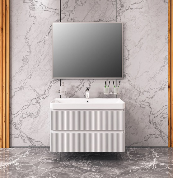 Тумба подвесная Аквародос Акцент Люкс 90 см с раковиной Deep МДФ белый матовый
