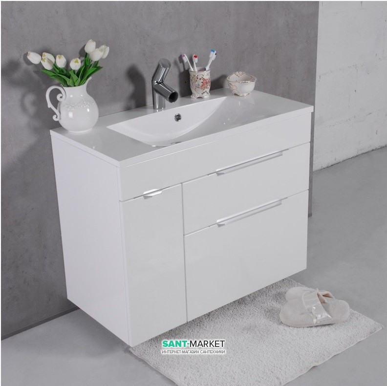 Тумба подвесная Буль-Буль Bermuda 895х454х710 с раковиной Amelia 900 белый