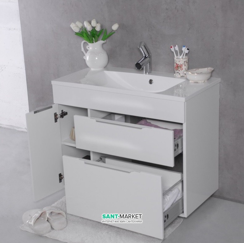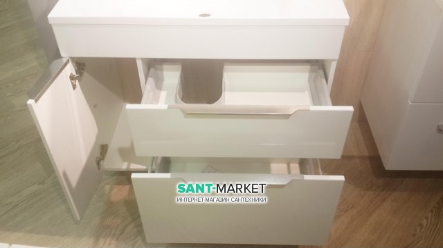 Вся мебель для ванной комнаты поставляется в собранном виде. Её можно повесить на стену или установить на пол используя ножки.