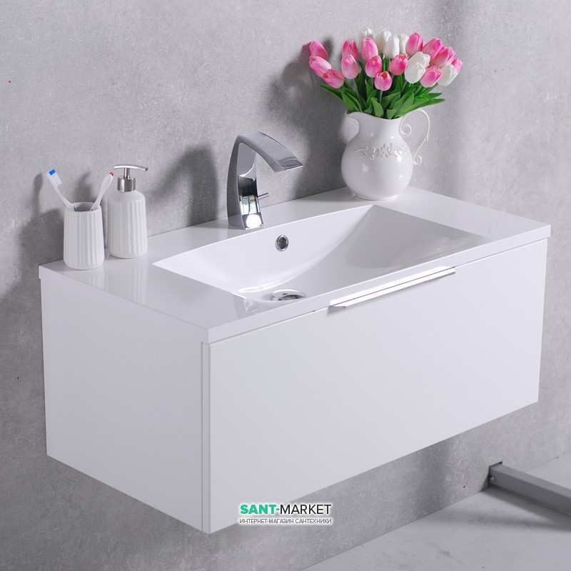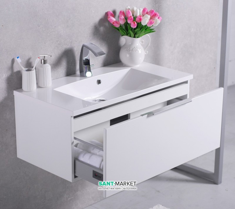 Тумба подвесная Буль-Буль Bermuda 895х454х370 с раковиной Amelia 900 белый