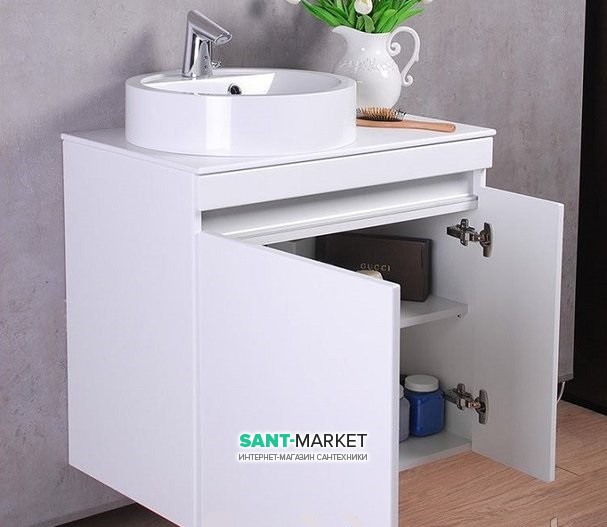 Тумба подвесная Буль-Буль Sheldon 693х444х746 с раковиной Renata 430 и столешницей белый
