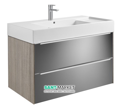Тумба подвесная ДСП/ДВП 100х49.8 дуб/темное зеркальное стекло с раковиной для ванной Roca Inspira FINECERAMIC белый A851077403