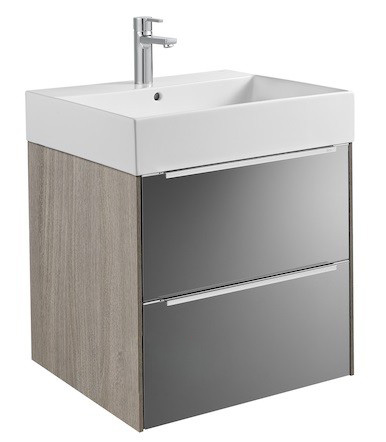 Тумба подвесная ДСП/ДВП 60х49.8 дуб/темное зеркальное стекло с раковиной для ванной Roca Inspira FINECERAMIC белый A851075403