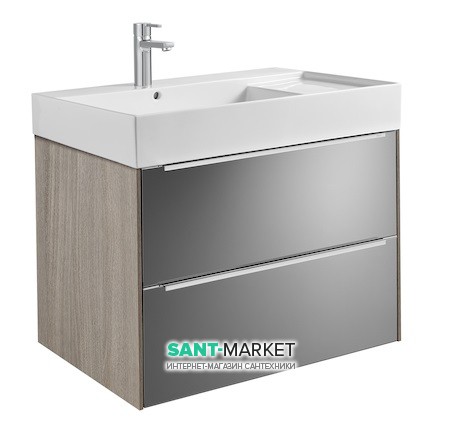 Тумба подвесная ДСП/ДВП 80х49.8 дуб/темное зеркальное стекло с раковиной для ванной Roca Inspira FINECERAMIC белый A851076403