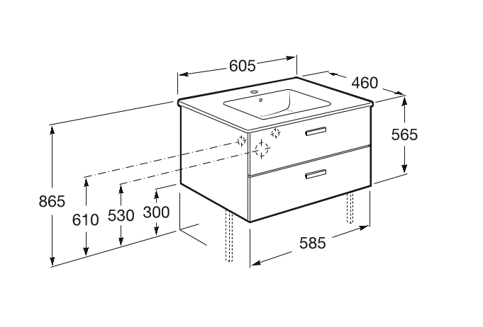 2) Тумба под раковину с двумя ящиками