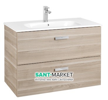 Тумба подвесная МДФ 80х46 береза с раковиной для ванной Roca Victoria керамика белый A855852422