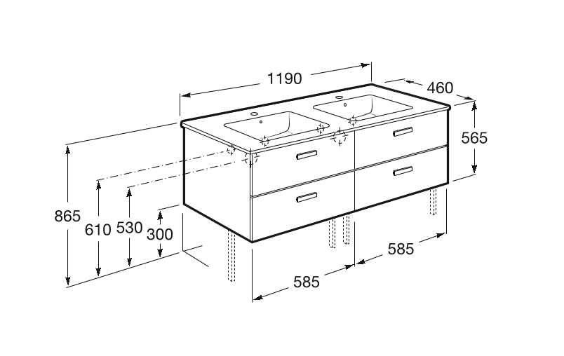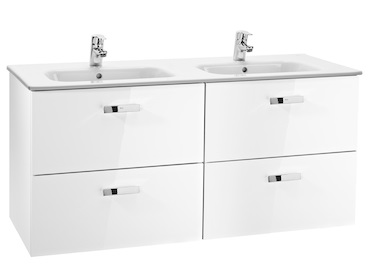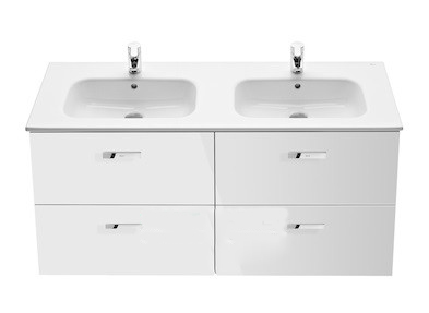 Тумба подвесная МДФ 120х45 белый глянец с двойной раковиной для ванной Roca Victoria керамика белый A855850806