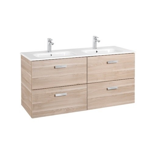 Тумба подвесная МДФ 120х45 береза с двойной раковиной для ванной Roca Victoria керамика белый A855850422