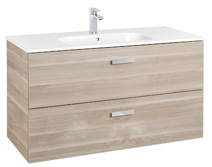 Тумба подвесная МДФ 100х46 береза с раковиной для ванной Roca Victoria керамика белый A855851422