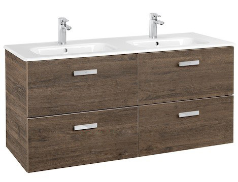 Тумба подвесная МДФ 120х45 кедр с двойной раковиной для ванной Roca Victoria керамика белый A855850423